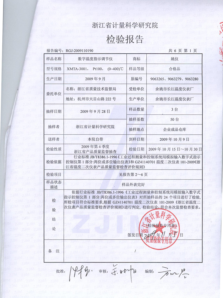 2009年第4季度檢測(cè)報(bào)告(XMTA-3001)